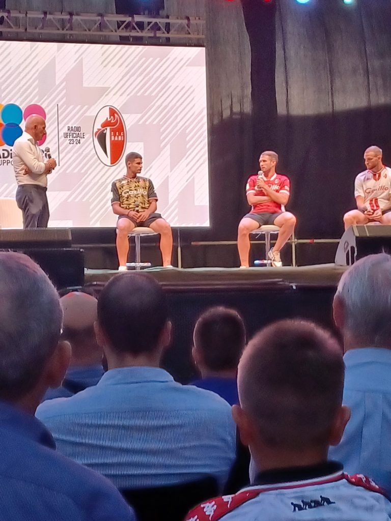 Il campionato va in pausa, ma non la passione dei tifosi biancorossi, soprattutto quella dei più giovani. Il Bari arriva in fiera, nella prima giornata di apertura della Fiera del Levante, con una delegazione di calciatori della prima squadra per un piacevole incontro con i proprio sostenitori. Presenti Vicari, Ricci e Koutsoupias all’evento di intrattenimento organizzato in collaborazione con Radio Bari, radio ufficiale SSC Bari, e condotto da Enzo Tamborra.
