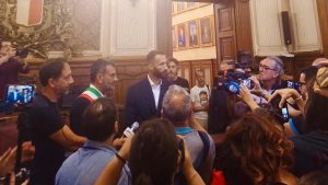 Valerio Di Cesare ha ricevuto le chiavi della città di Bari. L’auspicio è che l’ex capitano biancorosso possa essere da esempio per gli ex compagni.